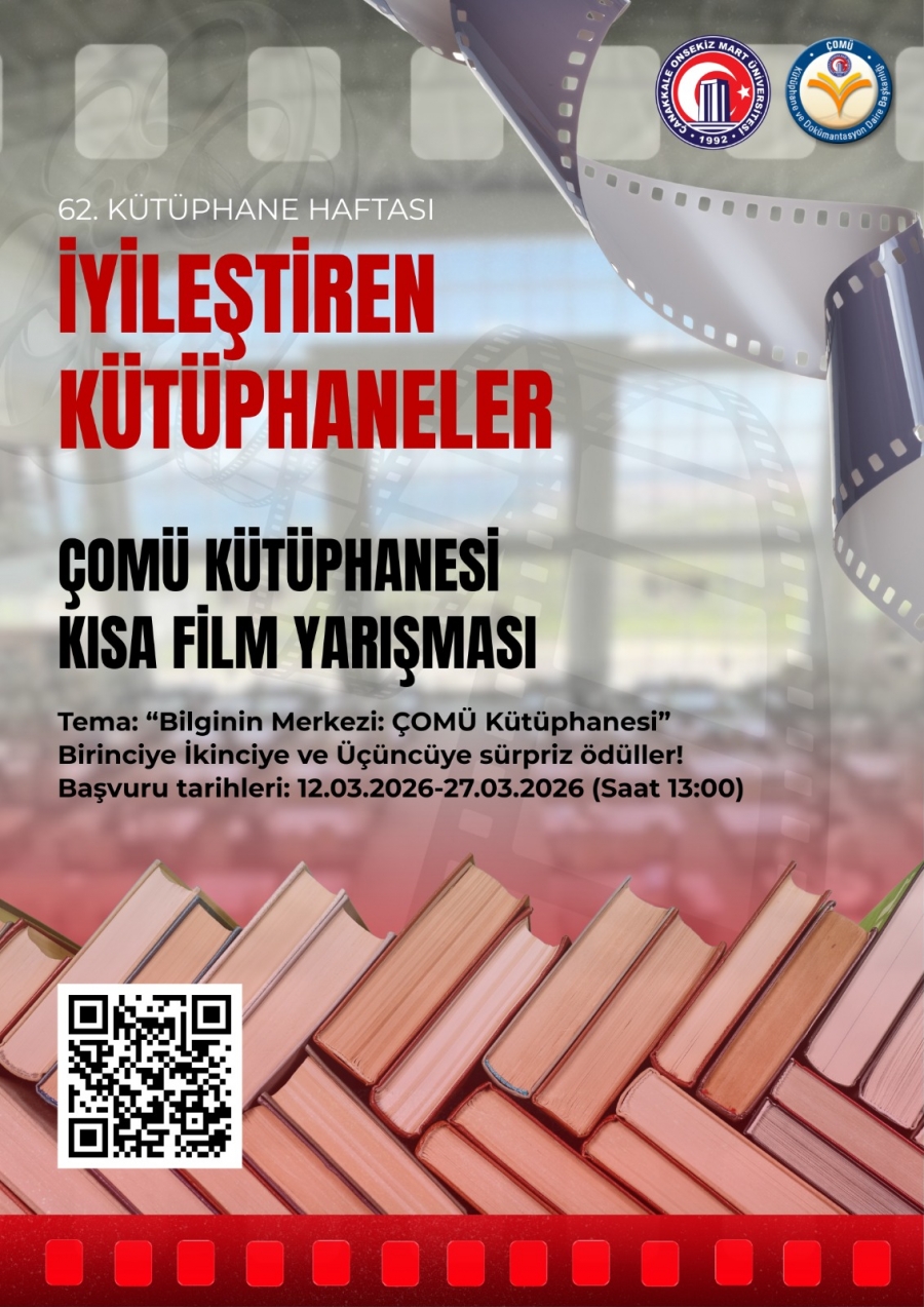 Çanakkale Onsekiz Mart Üniversitesi Kütüphanesi, öğrencilerin gözünden kütüphane deneyimini görünür kılmak amacıyla kısa metrajlı film (kurmaca, belgesel, animasyon, yapay zekâ) yarışması düzenliyor.