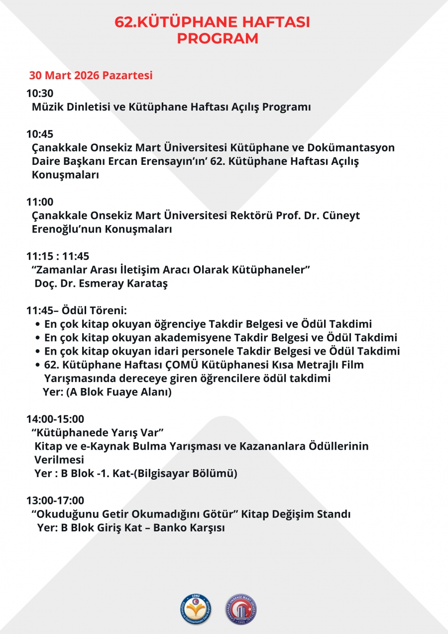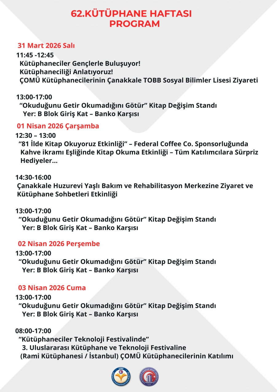 62. Kütüphane Haftası Programı